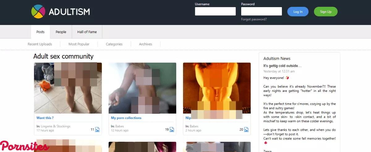 Even though Adultism features great options for choosing what kind of amateur content pops up on the homepage, sometimes a person wants to browse content the old fashioned way. Those that wish to sort content by recent or what’s popular can hover over Posts, then select either recent posts or most popular tabs at the top of the homepage. From there, results will be displayed that shows what’s most popular or has been uploaded recently.Hall of fame shows the best