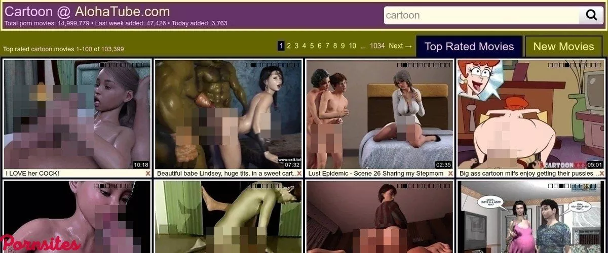 One of the advantages of utilizing a porn aggregator site is that they usually feature a lot more material in one location than any other type of porn site on the internet. The total video counter is at the top of the Aloha Tube Cartoon home page. It is always rising since new videos are regularly gathered from other sites and automatically placed onto Aloha Tube Cartoon. When I visited the site for this evaluation, Aloha Tube featured 14,722,609 films. Oh, no! That is, and I never imagined I'd say this, way more porn than I could need in a lifetime! I would never claim there is too much porn because a larger number of movies means a better variety! Aloha Tube was also kind enough to tell us how many videos were posted this week and how many were added only today, which are 4,722 and 42,524, respectively. If such figures do not impress you, you are an idiot or have not visited many porn sites. However, you do not need to search for videos on Aloha Tube Cartoon by Categories. There are several extra alternatives above the massive, expansive list of thumbnails. Sure, categories are chosen by default, but you can filter video results by Top Rated Movies or New Movies. It all depends on your preferences. You have complete control of the Aloha Tube Cartoon.Design and Organization