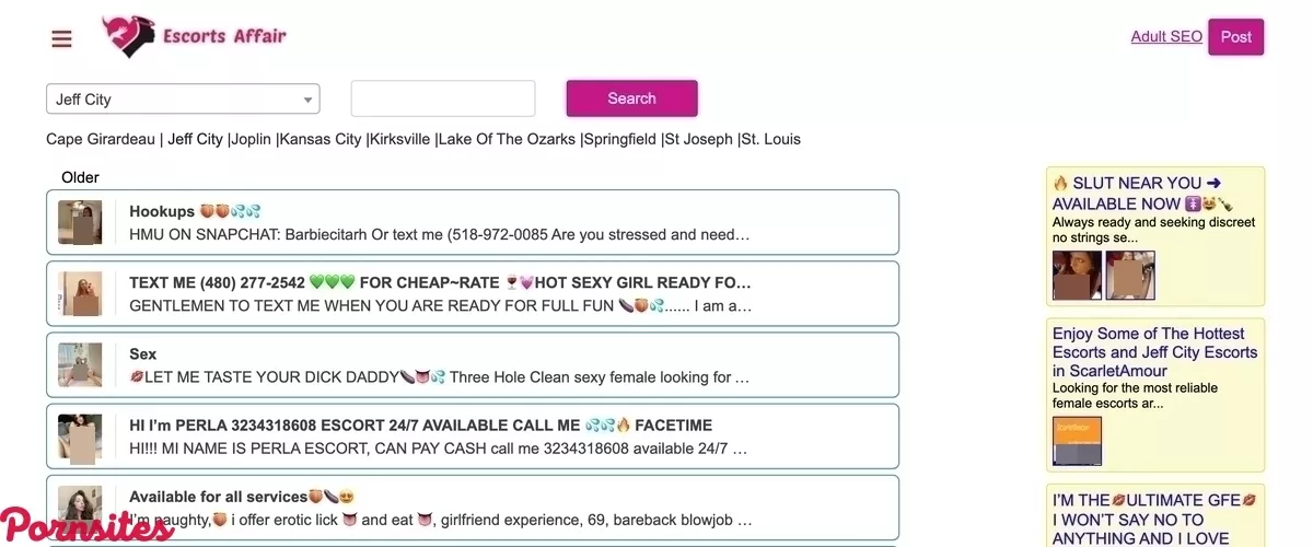 Before entering the EscortsAffair page and becoming overwhelmed with its enormous listings, you must first hover your cursor over and choose the "Agree" option. It implies that you accept all of its requirements to ensure the community's smooth operation. Anyhow, it's unlikely that you'll read it. Your sole concern is finding some new pussies to fuck. The popularity of such a plain-looking, the all-white website may surprise you when you first visit the main page. It appears simple and uncomplicated. I don't get the impression that the entire outfit is escorting. But everyone knows we shouldn't assess a book based on its cover. Since the website offers such great ease and service, the initial image of EscortsAffair doesn't bother me as much anymore. Signing up as a member or logging in is also available on the home page. Additionally, there are alternative ways to display an advertisement, which is the main purpose of this website. On the main page, you can also see a list of the states and regions where you may hire an escort. There are those from the UK, Asia, and the USA. It's maybe the most varied list I've ever seen. You might wonder how many enormous titties and tight pussies there are in each of these locations.Some Profiles Are Fake