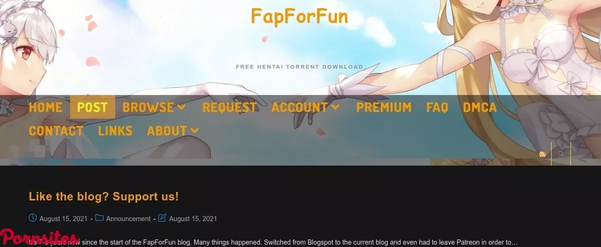 The homepage has a dark theme with a sizeable banner full of artwork of various female characters from anime. The logo for the site is hidden in there as well. The font color choice for that could certainly have been better. One of the first things you are likely to notice if you frequent torrenting sites is that this one does not have any ads at all. No banners, no pop-ups, and no redirects. This is a welcome change of pace that makes the site feel much safer than other torrenting websites. They achieve this by being completely supported by site donators and Patrons. Below the site’s banner is a header menu with the following options: “Categories, Tags, Game Format, Hentai Request, FFF-VIP, FAQ, DMCA, Contact, and Links.” The links page lists off links to other porn sites that Fapforfun recommends. Contact, DMCA, and FAQ are all rather straightforward pages. Though the FAQ page is a good place to go if you’re unsure of how to download and view the content on the site.Optional Site Donation Unlocks Some Exclusive Content and User Features