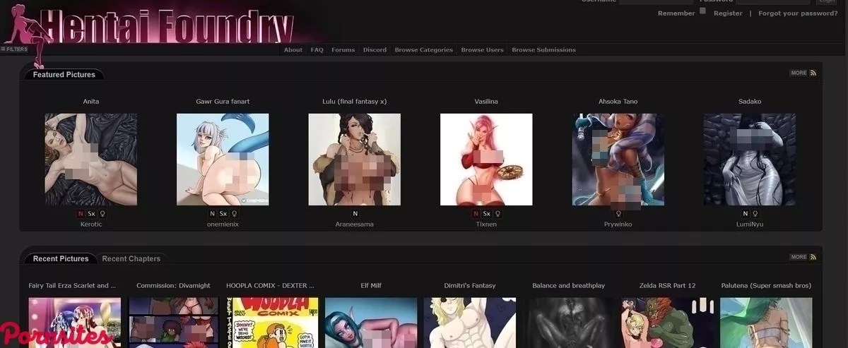 Hentai Foundry has stuck to a very simple and very elegant dark style with grey lettering and a somewhat forum like section breakdown. However, they shy away from large blocks of text so there’s a lot of focus on the display of multiple images across the screen. When you land on the home page you’re going to see the most recent pictures and featured pictures that have been picked out by community members for being particularly worthwhile. Further down you get a breakdown of the most popular pictures across a certain time frame and this particular section is a great place to find some quality content that has been vetted by other viewers of the site. Beyond that there’s the news section where you do actually get some text on this site. In the news section you’re going to see announcements regarding events like art contests where you can win actual cash prizes. So, while Hentai Foundry doesn’t technically pay artists for their work, there are frequent chances to win some real prize money if you think you’re up to the challenge. On the top bar of the site you can see several tabs that are helpful for getting around the site. First there’s a simple About and FAQ section that outline the basics of the website, like how to get around and what the rules of posting are. Then there’s the forums section where you can get in touch with other fans of the site and discuss quality smut. This is the place to go if you’re looking for a more textual approach to your visual smut. You do also get comments under specific art pieces however, so you can interact there if you prefer. Then there’s the Discord tab which leads you to the exclusive Hentai Foundry discord, if you’d like to get real close and personal with other porn connoisseurs. Moving on there’s the browse categories and browse users sections where you can get a detailed breakdown of art pieces by genre and by creator. This is super helpful if you’d like to go through specific art styles and find something that you particularly enjoy. It’s recommended to return to artists whose style appeals to you since they’re likely to upload new quality smut in the same vein pretty soon. It’s also a good idea to bookmark their individual pages so that you can keep coming back for more. Finally there’s the browse submissions tab where you get a date-sorted breakdown of all the art that’s been submitted to the site. Checking out a single day of uploads can take hours of browsing, though as Hentai Foundry is one of the most popular hentai oriented sites on the web.