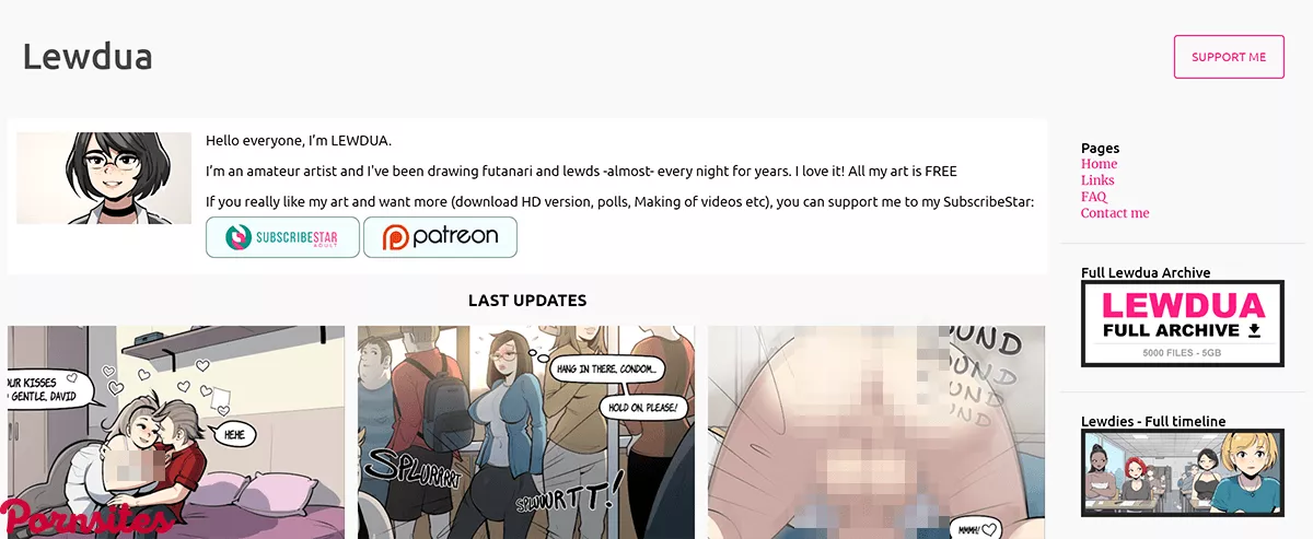 In reality, Lewdua seems to be more of a blog than a website, but I don't see too much of a difference between the two. Regardless, it looks pretty clean. Aside from the fact that they are using a bright white background, I am enjoying the way everything here looks. I already told you that all of the content here is free, but if you like it so much, you can subscribe to the artist's future comics through SubscribeStar. Anyways, the latest updates are what you will see as soon as you make your way to Lewdua. The content is not updated regularly, but you can expect at least a few new comics each month. From what I've seen, the artist sometimes gives us a few recent uploads per week, and sometimes you will need to wait around ten days for new smut. Regardless, that is not a problem or anything to complain about, especially since no membership is required. Yes, you read that right. No one will make you create your account on Lewdua because that feature doesn't exist. So instead, everyone comes here as a guest, browses through the content, and jerks off to it. The site looks pretty damn nice on the mobile phone, too, so you can slide in your daily fap session even at work. I already told you that some of the comics are parts of full-length series. Well, it looks like every single one of them is. Lewdua adds new characters from time to time, so things don't get boring. After thoroughly checking out their updates, I have seen that you can expect new content frequently. The time I was looking at earlier was around the holidays, so it makes perfect sense why there weren't more comics. The site has been around since 2017, or at least that is what their archives are saying. So January of the stated year is when it all began.No Ads And Sorting Options, Though