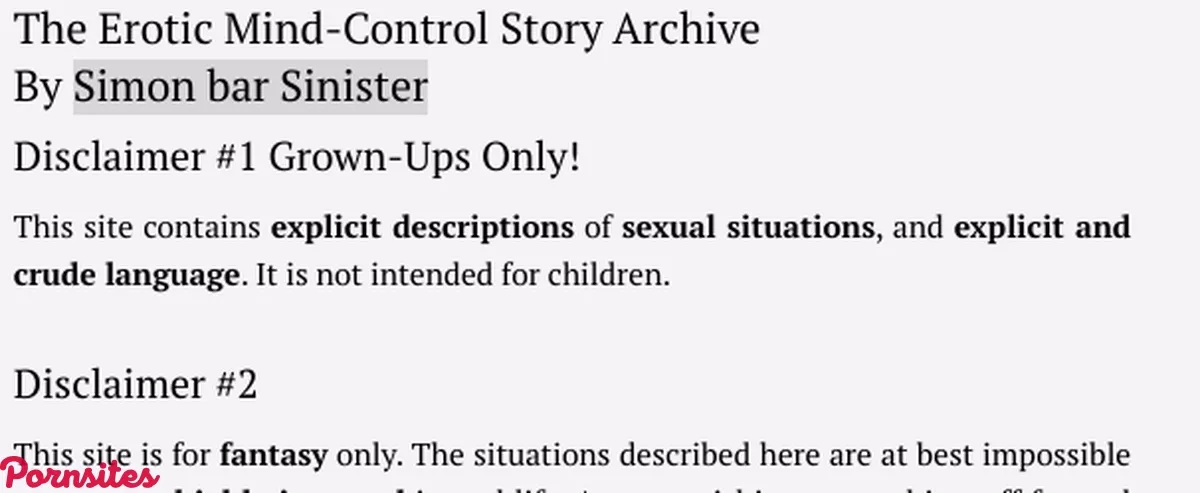 Mcstories.com is an erotic site that provides explicit descriptions of sexual situations involving erotic mind control. The MC in MCStories is actually short for mind-control, and users are looking at a massive free archive of adult stories revolving around this theme. There are loads of kinks and fetishes thrown in as well, including bestiality, scatology, lactation, humiliation, and cannibalism, among many others. The site makes it clear from the offset that the situations described in the stories are at best impossible and, at worst, profoundly immoral. Anyone looking to try this stuff should seek psychological help. The site is set on a simple platform, and with over 15,000 stories to check out, fans of written erotica should find their type of debauchery pretty easily. Time to take a look inside the world of erotic mind control stories.Atrocious design for starters