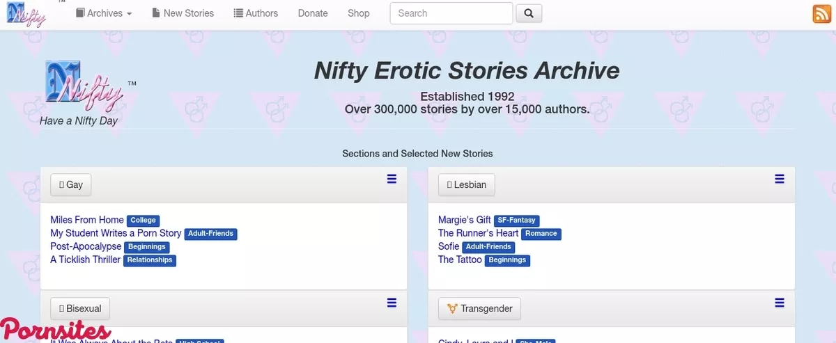 The first thing you’ll see when you head on over to Nifty is a proud statement about the site being around since 1992 and boasting over 264 thousand stories by over 15 thousand authors. They set the stage quite well for what is sure to be a huge and impressive library of erotic literature. The particularly appealing factor of this site is that most of the writers are amateurs. This is a safe space for homemade literary smut. It also means that if you are an aspiring porn writer, you too could find your content among their covers if you wanted to.