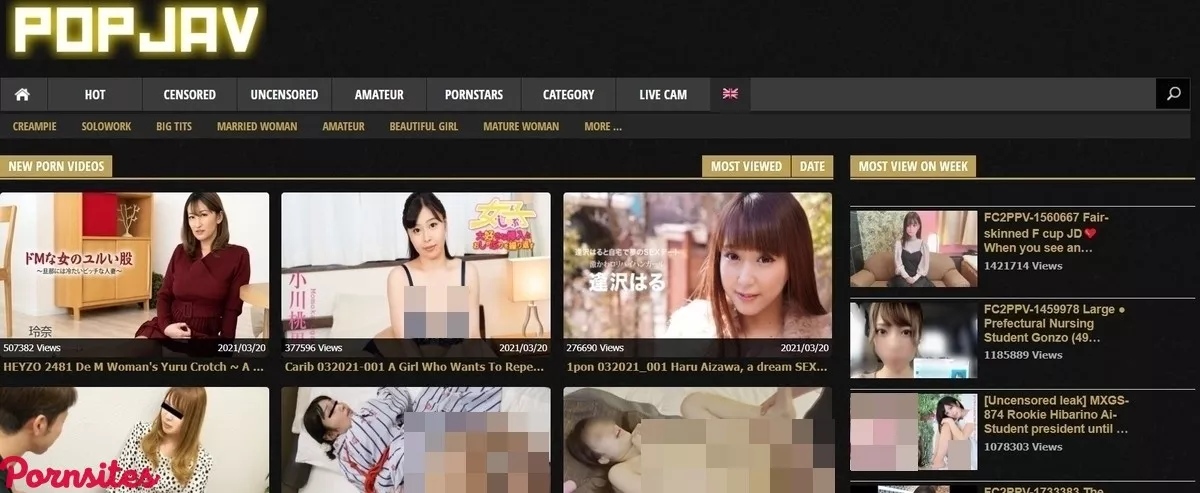 PopJAV has a ton of categories for one's viewing pleasure. Before jumping into that, the website deserves more praise for its user interface. Because PopJAV pays attention to the details, they have thoughtfully included popular categories near the top of the categories' page. Click on the categories tab near the top, and visitors will see the sites' most popular categories: as of this writing, that was:- Married woman.