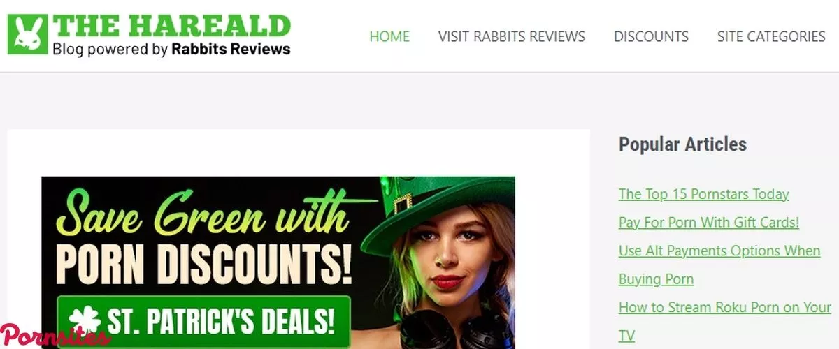 What does Rabbitsreviews.com/hareald/ have to offer us in terms of design? Well, the first thing your horny eyes no doubt find themselves fixed on is the site’s bright green logo which does a great job of grabbing your attention from the moment you arrive at Rabbitsreviews.com/hareald/. The site’s logo spells out The Hareald in stylish green lettering accompanied by a graphic of a horny hare or rabbit; it’s hard to tell. It’s also accompanied by the tagline, ‘’blog powered by Rabbits Reviews’’. There’s then a short menu that directs you to the blog’s homepage, the leading Rabbitsreviews.com site, a page dedicated to porn discount codes, and a selection of porn categories available on Rabbitsreviews.com. The blog is then divided into two sections. The first section sits on the left-hand side of the side and presents you with the latest blog articles in a vertical format. Each featured article has a large thumbnail, a title, a text excerpt, an upload date, an author tag, and a read more button. On the right-hand side of the blog sits a sidebar that is home to a handful of widgets ranging from popular posts and most recent articles to top-scoring porn sites and a link to contact the site’s admins. An internal banner ad also draws your attention to the main Rabbitsreviews.com site.What I Like Most About it
