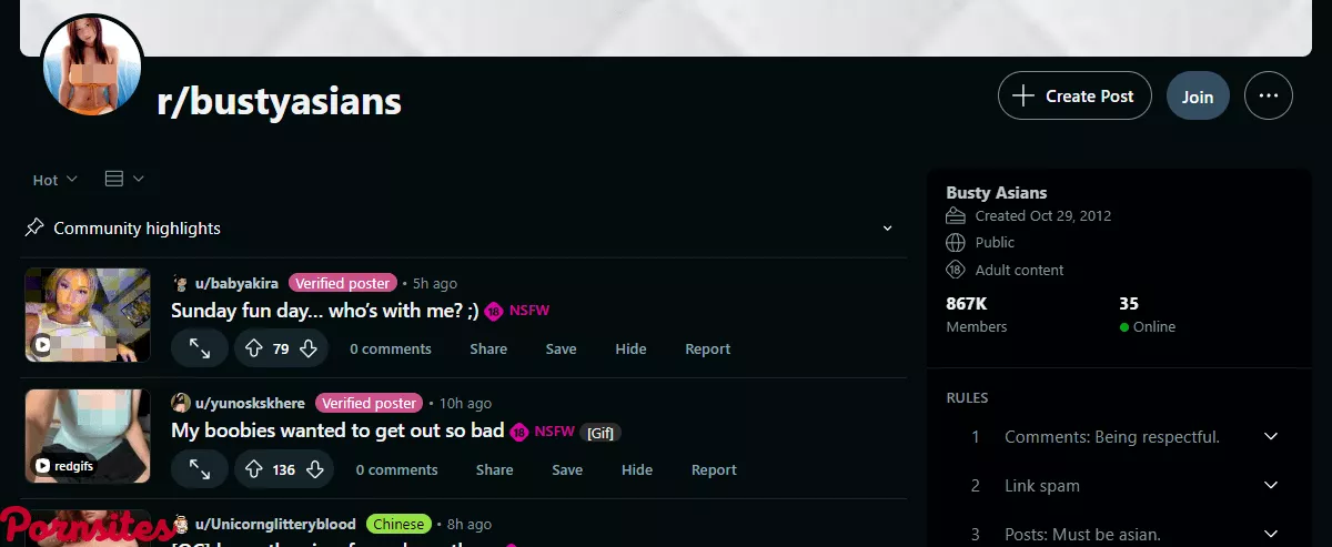 - They have a respectful and sharing community: In a world full of trolls, the Busty Asians community on Reddit stands apart by ensuring safety, respect, and generous sharing of content. Your shared preferences make you part of an engaging, cultured fraternity.