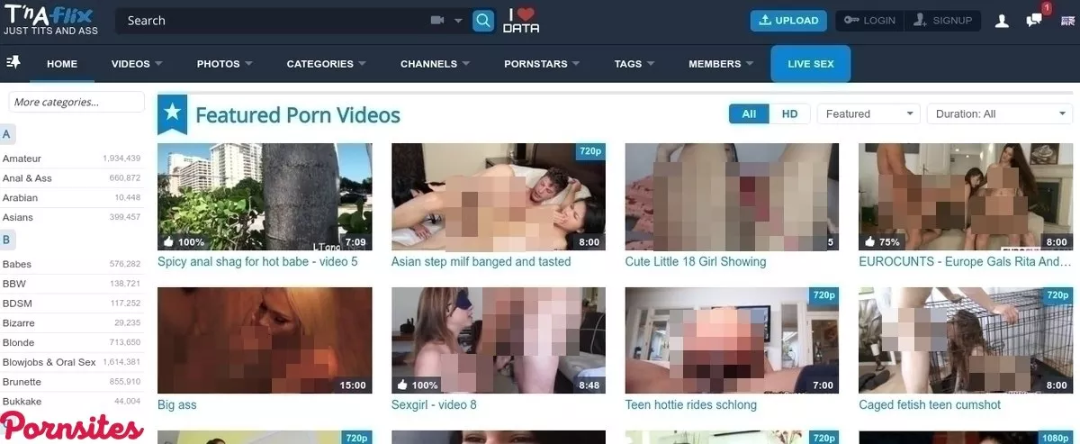 Although the first thing people will notice is probably going to be the fantastic thumbnails that will make a person want to click and watch, their attention will quickly be diverted to the left sidebar. Visitors should pay attention to this section for at least a moment before they begin exploring what TNAFlix has to offer. Look to the left sidebar, and a person will notice how convenient this area truly is. What makes it most convenient is how simple it is to jump into any category with a simple click. This isn’t an instance of only the most popular categories being displayed in the sidebar, either. Every category is represented, saving visitors a few clicks when they want to jump straight into the action.Categories have numbers by them