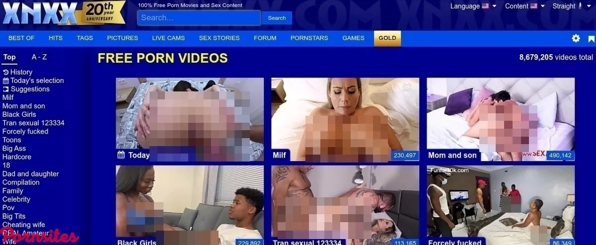 XNXX is a very old website, which is partially reflected in the design. The logo and color scheme have an ancient, outdated look that matches the 2000 copyright date at the very bottom of the page. The porn thumbnails that line the page looked modern enough, but lack the HD crispness many sites are now using is one of their selling points. Layout and general look aside, it isn’t terribly difficult to see what’s drawing their 2.3 billion monthly visitors. Not only is there a wide variety of hardcore perversion on display, from teenage oral sex to unprotected anal penetration and lesbian face riding, but there is an enormous amount of it. According to the figure above the thumbnails, XNXX currently has over 8 million videos total. This collection size is unrivaled except for a handful of the bigger free tubes like Pornhub. It’s a collection size that XNXX has built organically over the course of decades, one of the main advantages of getting in on the ground floor. Younger tubes often try to build their catalog quickly by scraping content from other sites, leaving them bloated with low-quality, low-resolution scraps. The front page displays thumbnails representing some of the site’s more popular categories. Many of them are the expected subgenres of smut, for example Redhead, Interracial, Blonde and Orgy. They also have numerous incest-related categories, like Taboo, Stepmom and Son, Family, Japanese Mom and Son Forced Mom. It’s not uncommon for porn tubes to hide taboo tags, so fans of the familial genres will be happy to see them so prominently displayed right from the front page. The main genre tags are deeper and more specific than on other tubes, perhaps on account of the much larger collection size. If the Cheating Wives, Shemales, Big Ass Latinas and Big Black Asses represented in the thumbnails don’t do it for you, a text list along the sidebar provides even more XNXX porn categories. Celebrity, Sleeping Mom, Feet, Pissing and Squirting Orgasm sections are just one click away from the main page.Watch Porn on the XNXX Mobile App